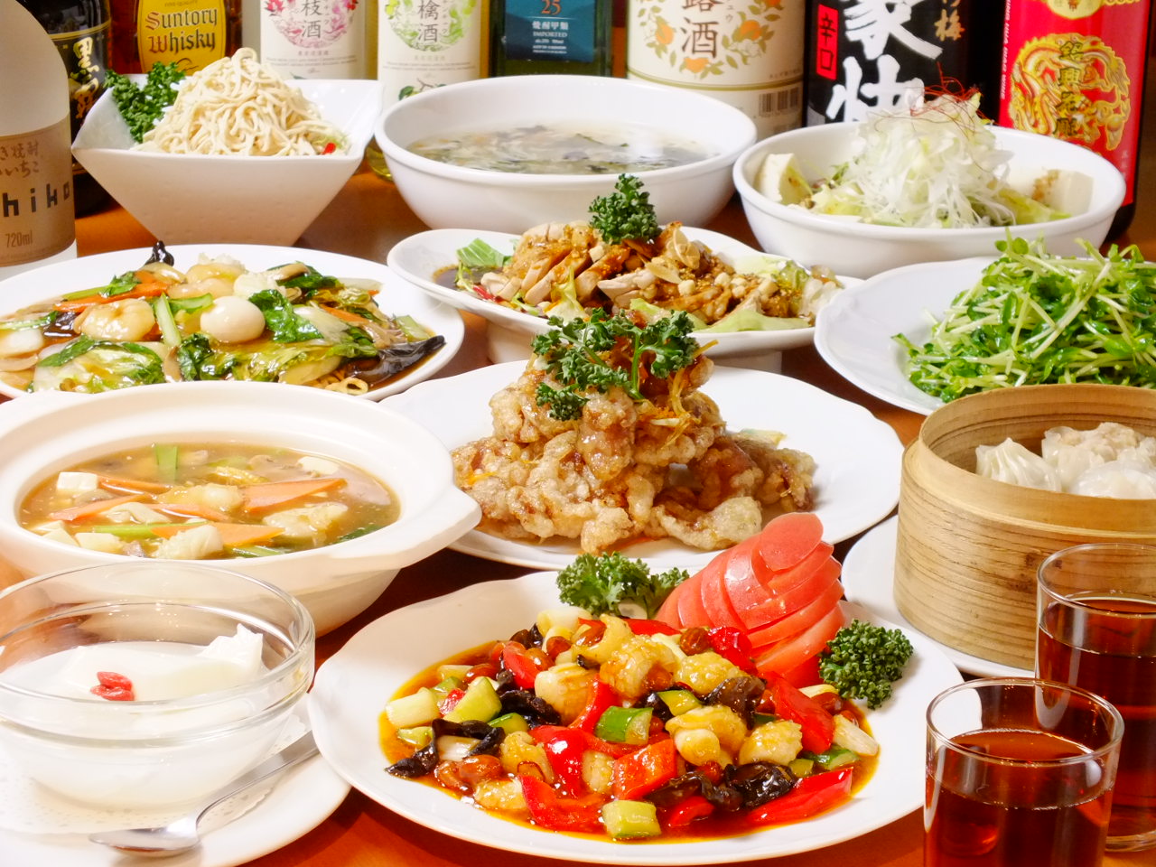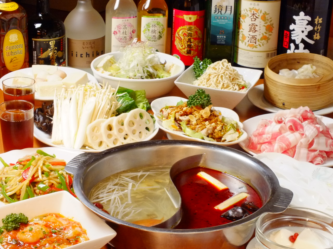 青椒肉絲やエビチリなどの中華料理はもちろん、当店自慢の“火鍋“も楽しめるお得なコースです♪